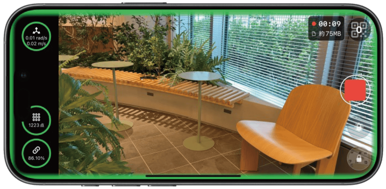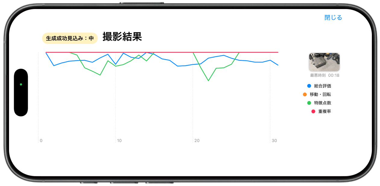 - 3Dデータ生成に重要な要素を、撮影中にリアルタイムに解析・採点