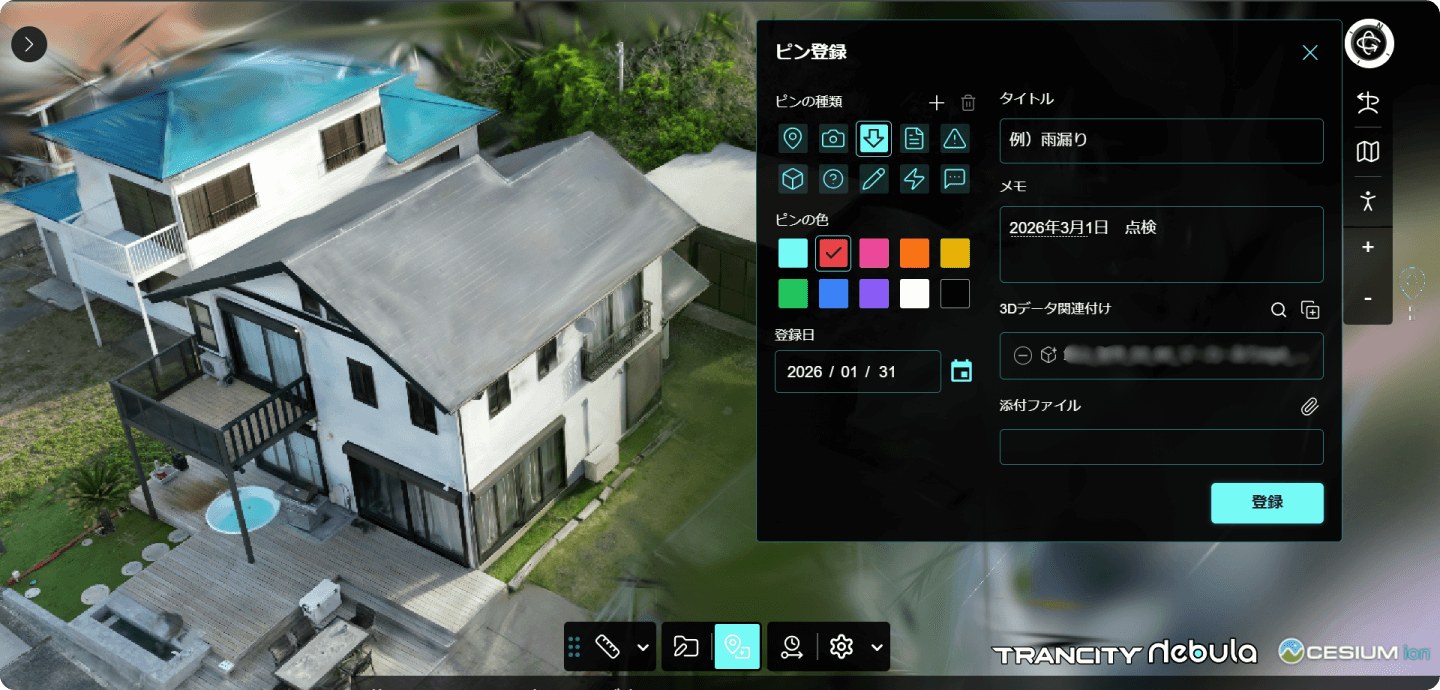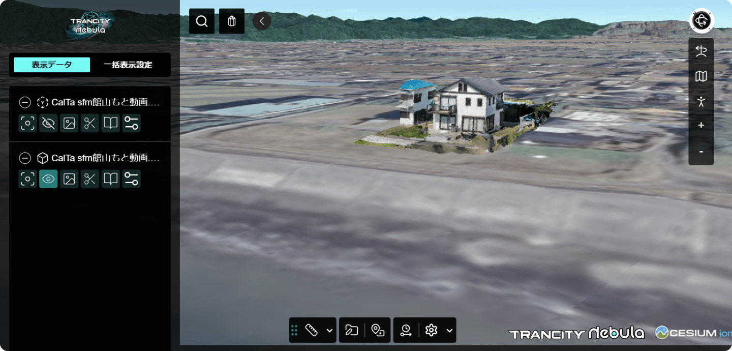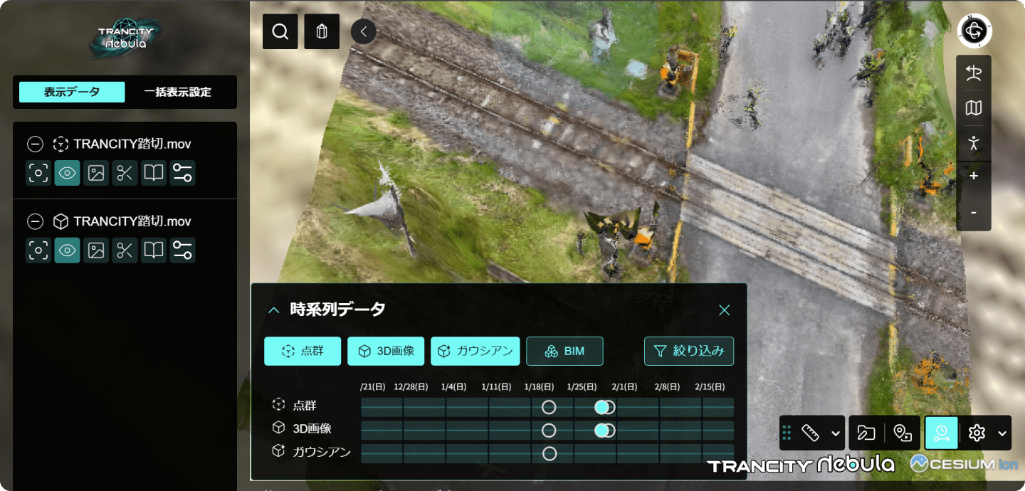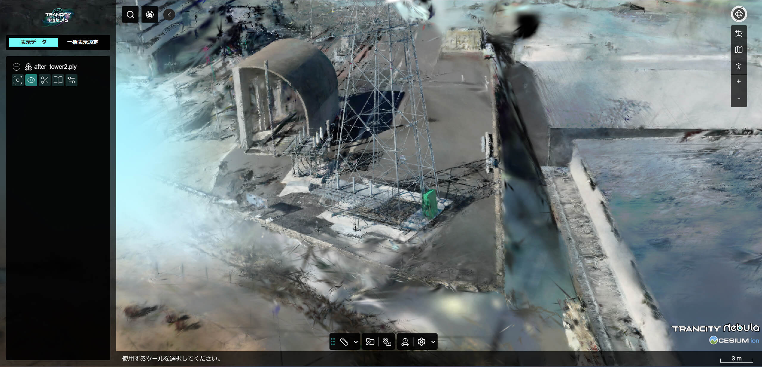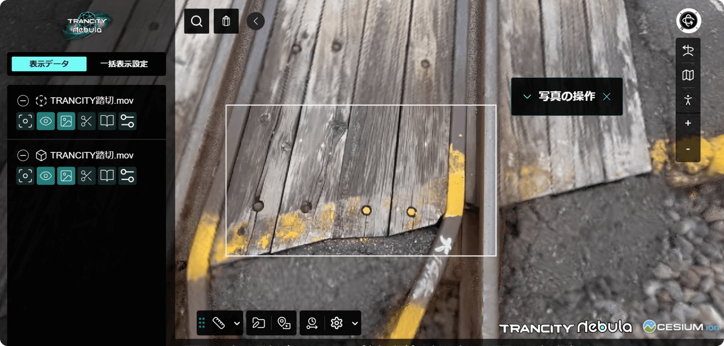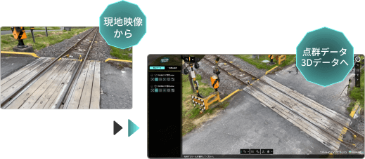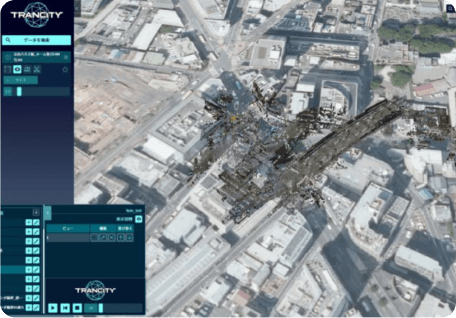 - 点群データと写真をTRANCITYのデジタル地図上に重ねて表示