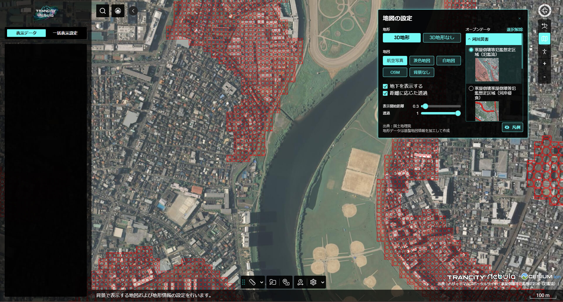オープン地図連携を強化し、現場の3Dデータと災害・地盤・土地利用などの情報を重ねて表示できます。
